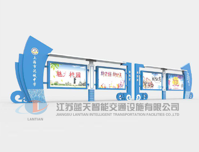 是一家生產(chǎn)宣傳欄,候車亭,公交站臺,閱報欄,指路牌,廣告垃圾箱,滾動換畫燈箱等系列產(chǎn)品廠家!產(chǎn)品多達(dá)上百種,亦可根據(jù)客戶的需求加工制作各種型號、規(guī)格的產(chǎn)品。目前已經(jīng)成功的向市場推出裝備有太陽能的各類產(chǎn)品,緊跟國家倡導(dǎo)“節(jié)能低碳”的環(huán)保政策。